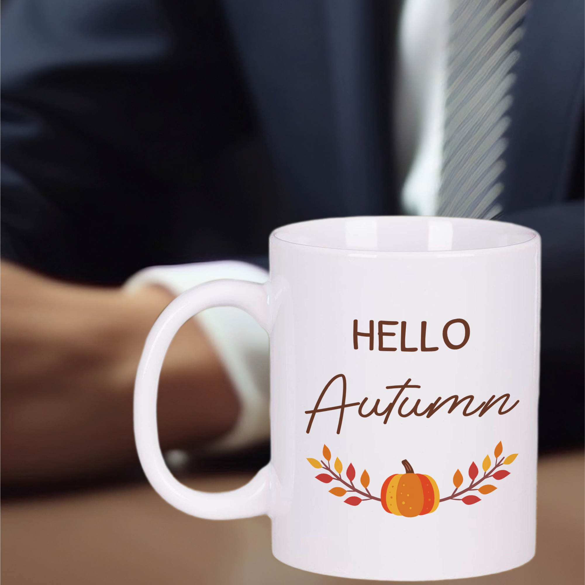 Celebrate the cozy season with our charming Hello Autumn mug. Perfect for sipping your morning coffee, tea, or hot chocolate, this mug features a warm autumn design with a pumpkin and fall leaves. A lovely seasonal touch for your home, or a thoughtful gift for friends, family, or coworkers who love all things fall.